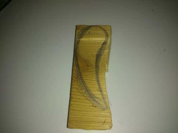 tomar un pequeño trozo de madera y dibujar la forma del ala. usar la sierra caladora cortar la forma áspera. hacer esto para una vista superior y una vista lateral. Luego usé mi dremel a la arena a la forma correcta y grabe en las plumas.