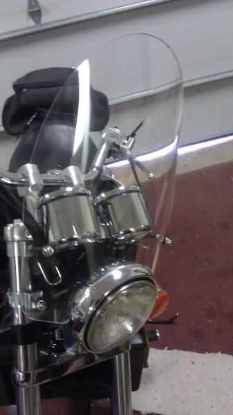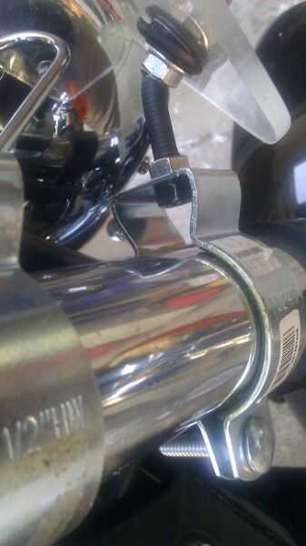 Las costillas van desde los agujeros en los extremos de las abrazaderas a ojales instalados en los agujeros perforados en el parabrisas. Tomó una gran cantidad de ensayo y error para determinar que los agujeros debían ser y cómo doblar el vástago del tornillo. La idea es orientar la curva de la varilla que penetra el parabrisas perpendicular a la superficie del plástico en ese momento.