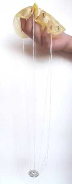 aquí es una manera simple de hacer un paracaídas de artículos para el hogar.Estos chutes trabajará con cohetes modelo y otra parte lanzado objetos.Todo lo que se necesita es:• Película plástica, una papelera puede liner u otro plástico fino de la hoj