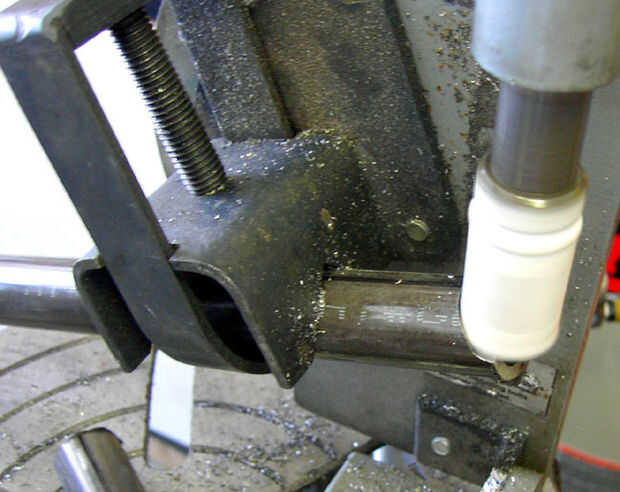 Donde los tubos entrecruzados en otra, utilizamos una Sierra para cortar una muesca curvada del diámetro apropiado en la intersección.