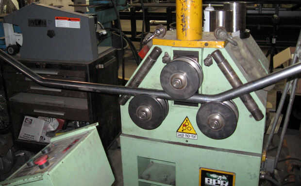 Luego, los tubos fueron instalados en los montantes de la placa y viró en su lugar usando un soldador MIG.