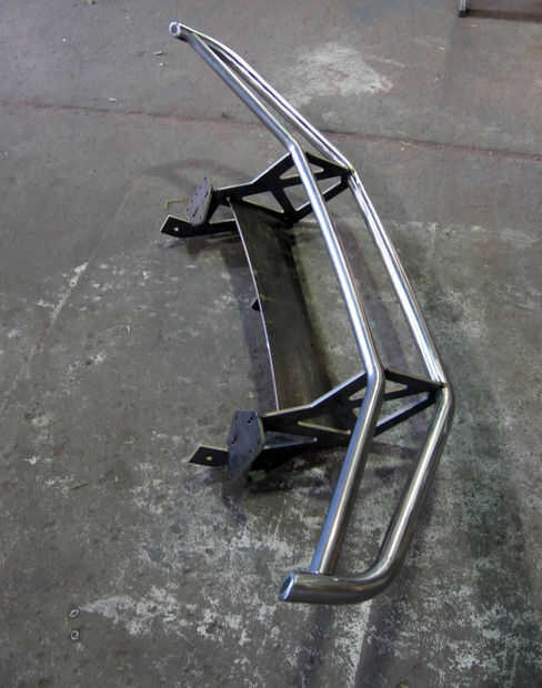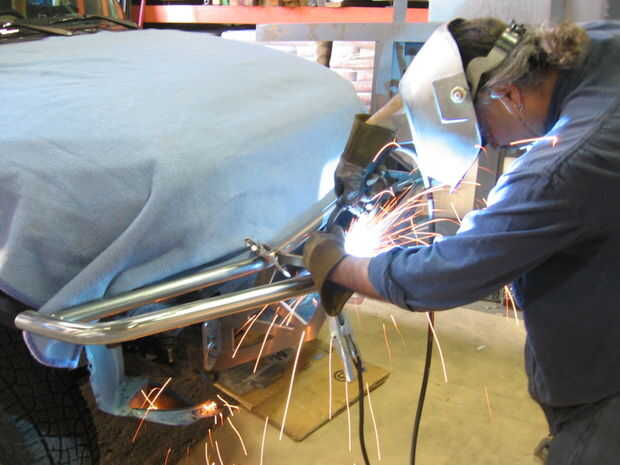 Los extremos del tubo frontal fueron cortados en un ángulo para que coincida con la geometría de carro vecino, con óvalo en forma de discos y soldar con un Soldador MIG. Las tapas eran suelo liso con una amoladora con discos de lija y scotch brite discos.