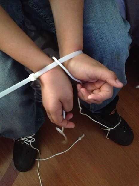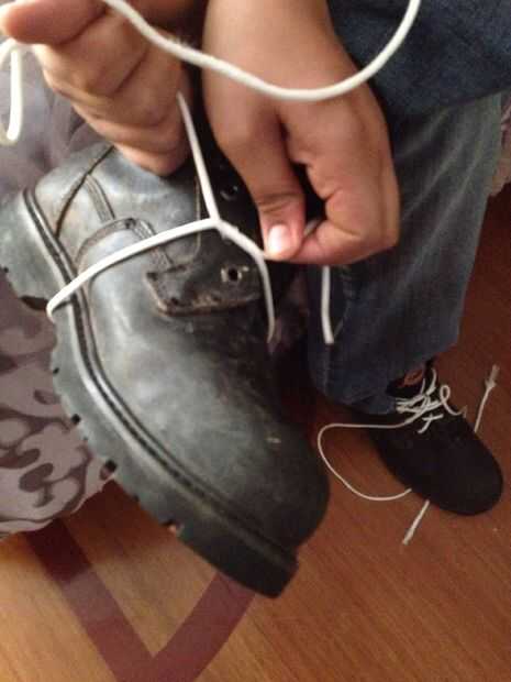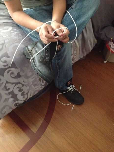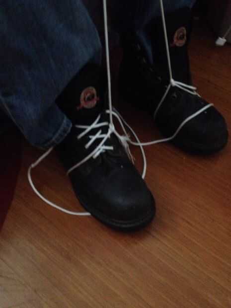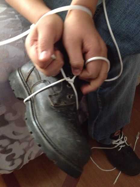 Atar cada extremo de la parachord alrededor zapatos Asegúrese de hacerlo pasar por los lazos del cierre relámpago