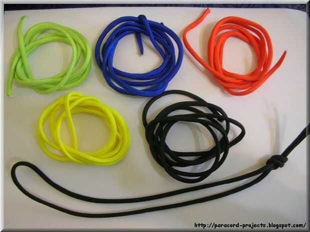 Paso 1: fuentes de Necesita 2 paracords de color de su elección y una hebillaPaso 2: Después elige los 2 colores que mina corte a 5 pies para una longitud seguraPaso 3: Agarrar uno de los colores y tire de la base (el interior filamentos) de paracord