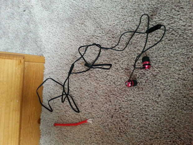 Recientemente compré un par de auriculares en la oreja pero fue almacenarlas siempre en el piso cuando no los use en mi PC (mi escritorio suele ser un lío). Esto culminó en unos pocos incidentes de corriente por el cable, que no puede haber sido buen