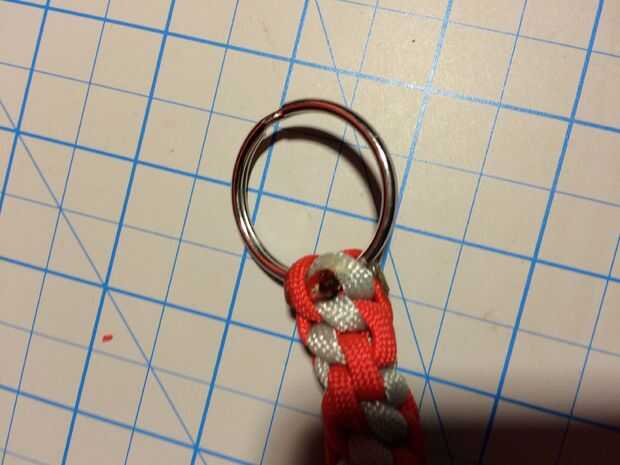 utilicé un nudo corona otra vez para fijar el aro a la manija. Luego de la paracord exceso y fundirlo.