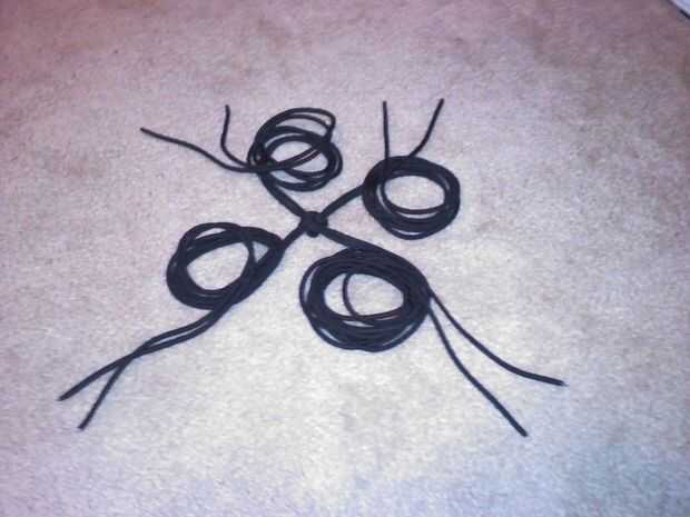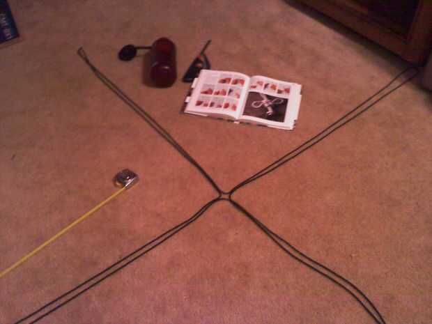 para iniciar el nudo, pone la cuerda en forma de Cruz, haciendo de cada brazo y tapa de 3 pies.