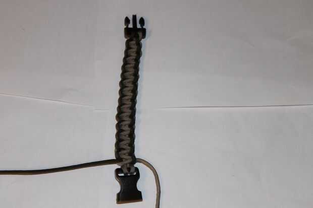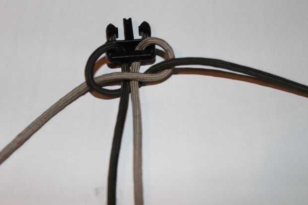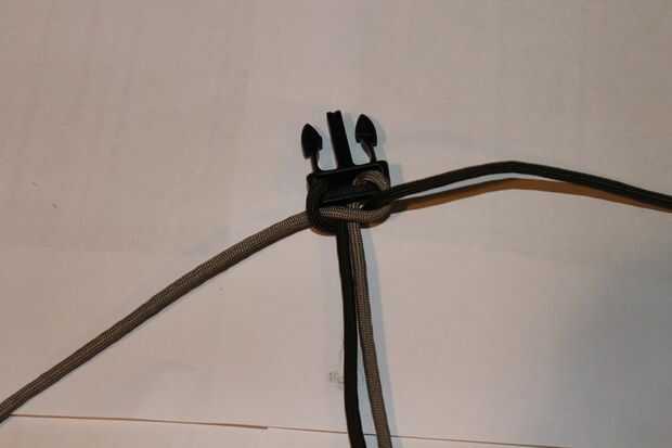 Paso 1: Se funden su 2 longitudes de ParacordPaso 2: Lazo el Paracord alrededor de la hebillaPaso 3: En el siguiente corchete tomar uno debajo y hacia arriba y el otro encima y bajar el cierrePaso 4: Tome la cuerda derecha sobre los 2 núcleos y tomar