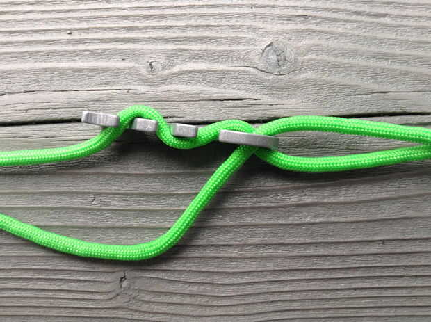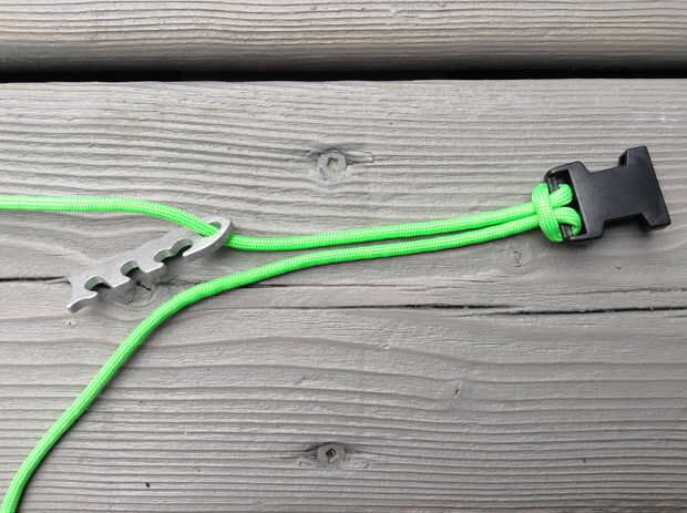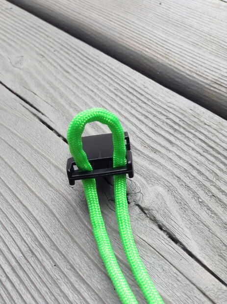 -Pase los extremos de la cuerda a través de la ranura en la otra mitad de la hebilla.