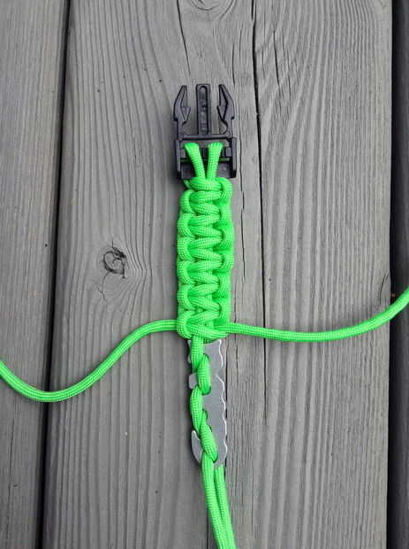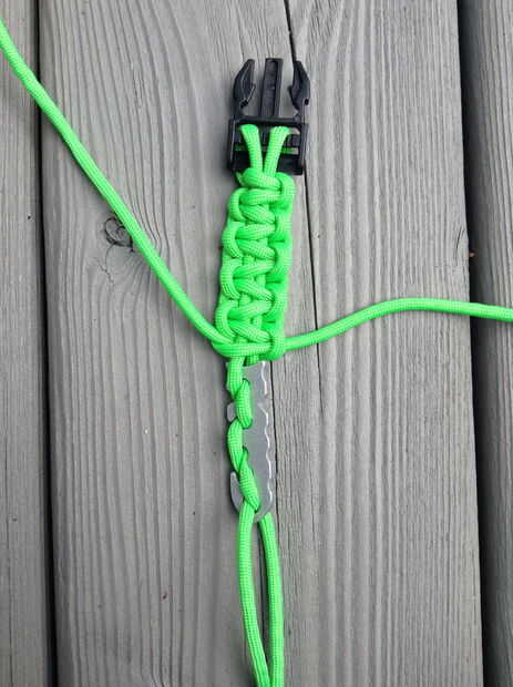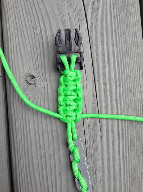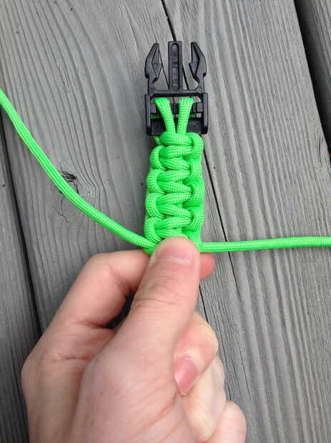 -Una vez que alcanzan los nudos la espina de pescado les empuje hacia abajo hacia la hebilla. Usted tendrá más espacio para continuar los nudos.