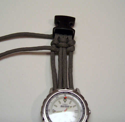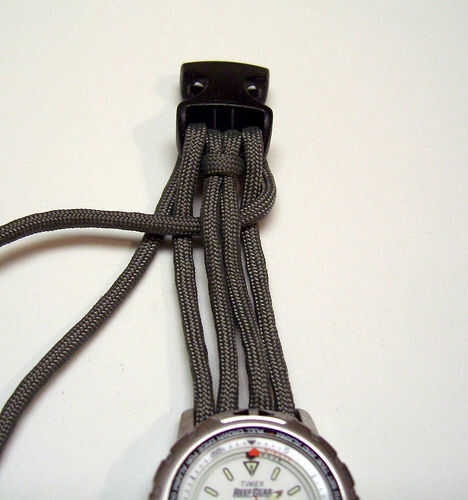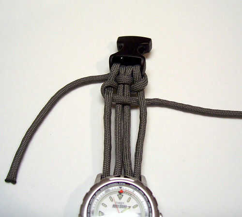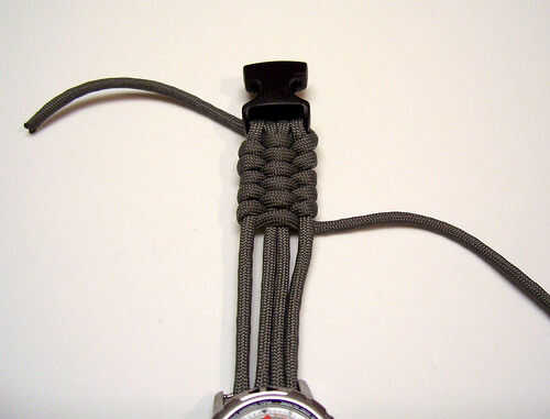Tejen sobre los dos hilos del centro y en el exterior, continuando este proceso, hacia adelante y hacia atrás. Trate de no dejar demasiada holgura como vas a mantener el tejido. Cada par de tejidos, empuje su trabajo estanco, hasta la partida final de hebilla.