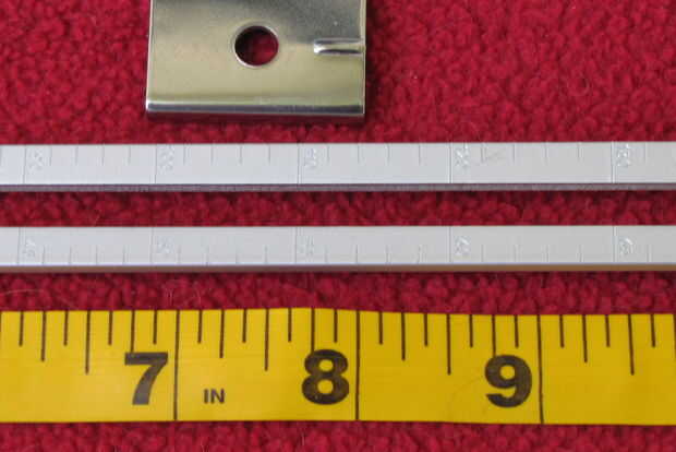 A continuación, encuentra los valores de la longitud muñeca que desee en la cinta de medir y Lee las marcas correspondientes en la barra ranurada. Hacer esto para ambos tamaños de la hebilla y usted debe obtener algo como el siguiente paso.