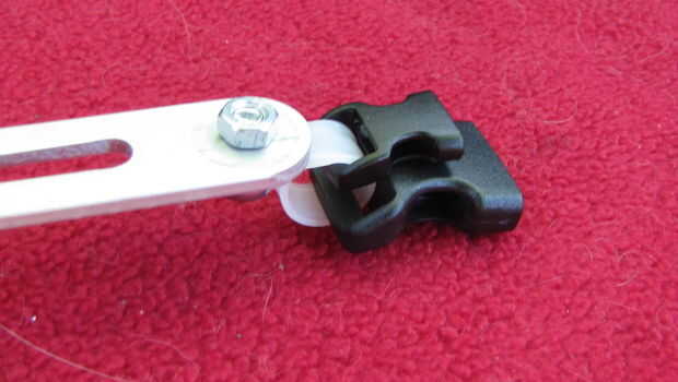 Coloque una abrazadera de cable, un extremo hembra de una hebilla de liberación lateral 3/8", un extremo hembra de una hebilla del lanzamiento 5/8" lado al