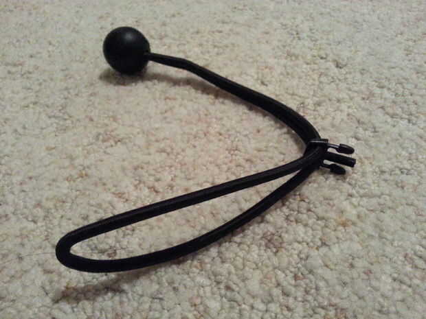 Para configurar la plantilla de caja de leche, tomar un lado del hilo y hebillas Fastex (yo he usado el lado macho en la foto) la bola de bungee de lona de canopy a través de la hebilla. Si no tiene alguno de estos o si no puede encontrarlas en su ferretería local, puede utilizar bandas de caucho resistente en su lugar.