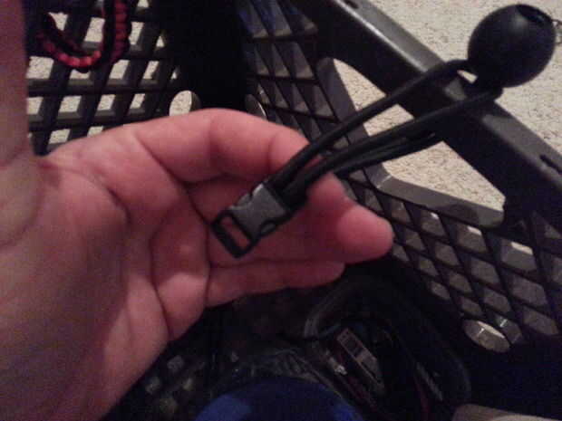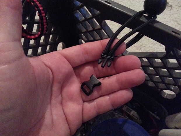Para utilizar esta plantilla, inserte un par fresco de hebillas Fastex los atado a los cordones de bola del amortiguador auxiliar.  Estos serán los que se ata su 550 paracord a y voluntad de ser parte del producto terminado.