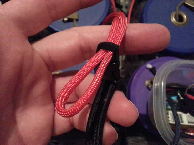vi la pulsera del paracord por Stormdrane un par de meses atrás y tuvo que hacer algunos; una noche, mientras insomniacking, inspirado y tuve una epifanía: ¿por qué no hacer un brazalete de paracord, usando un puño de mono y un lazo como un cierre, e