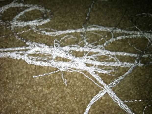 1 paso fue quitar las tripas de la paracord. Es bastante fácil empezar sólo los hilos blanco y trabajo de la cubierta!