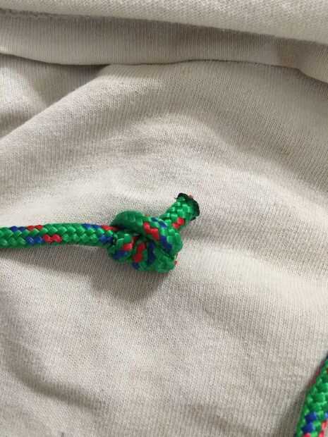 Haga un nudo en un extremo de la cuerda. Pellizcar entre el pulgar y el índice. Relaje el brazo a tu lado y en el sobre la rodilla, un nudo. Aquí es donde comienza la bolsa.