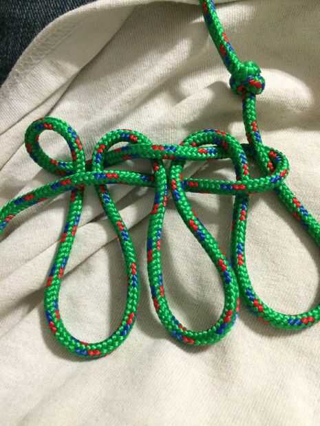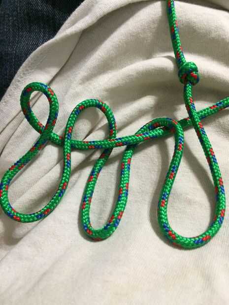 esta es una manera útil para hacer un cabestrillo.  ¿Qué hace bien?  No necesita utilizar dos trozos de cable, y si usted necesita la cuerda por otra razón rápidamente, apenas se desate el lazo del dedo y el nudo de tope, tirar de la cadena a través