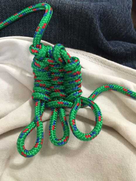 esta es una manera útil para hacer un cabestrillo.  ¿Qué hace bien?  No necesita utilizar dos trozos de cable, y si usted necesita la cuerda por otra razón rápidamente, apenas se desate el lazo del dedo y el nudo de tope, tirar de la cadena a través