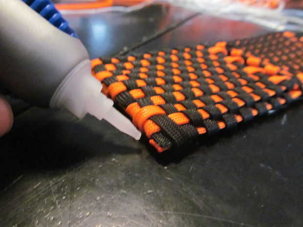Después de quitar el formulario yo cortado los extremos sueltos y les derretido. Entonces usé super pegamento para pegamento los extremos libres hacia abajo. Porque tenía un número impar de tejidos, me quedé con una fila de bucles abiertos en un extremo. Simplemente corrí otro pedazo de cable a través y encolar los extremos.