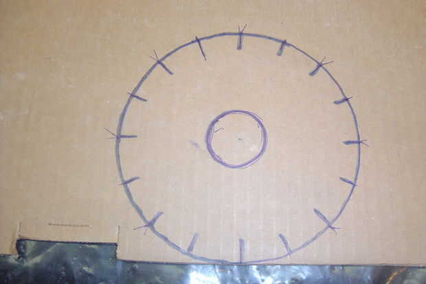 Paso 1.  dibujar dos círculos uno dentro de otro. El exterior alrededor de 6-7 pulgadas. y el interior 1-2 pulgadas. entonces 16 marcas en el círculo exterior en distancias iguales de uno otro.