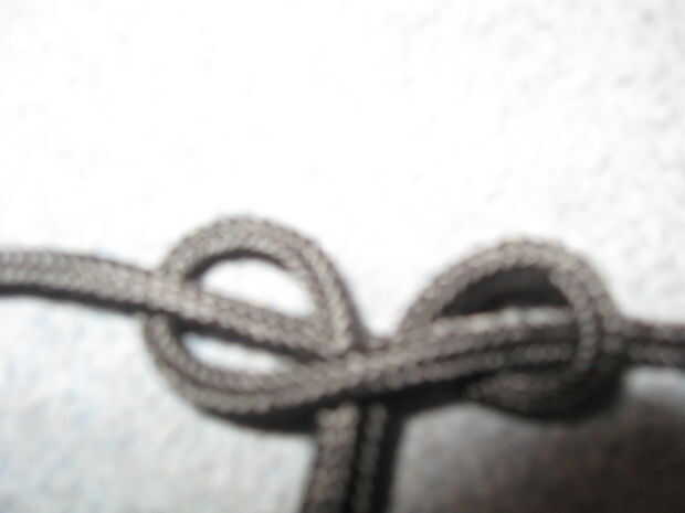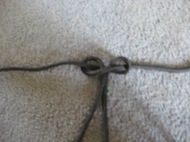 Coge un extremo y vaya sobre bajo y otros una sola vez bajo control como en la foto y tirar.