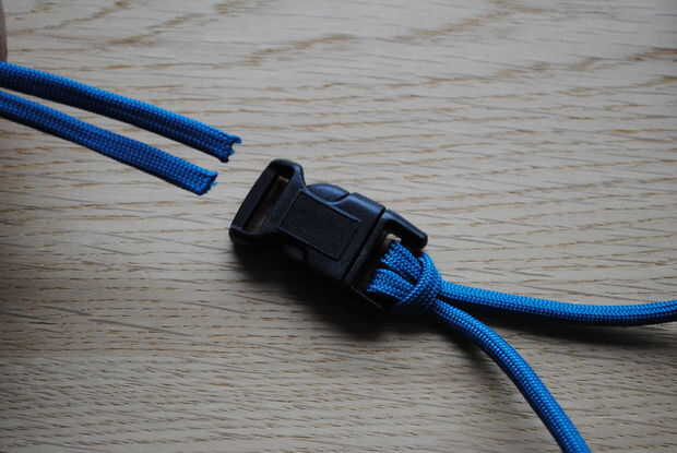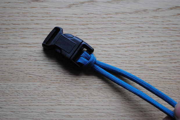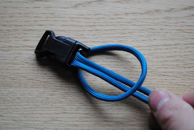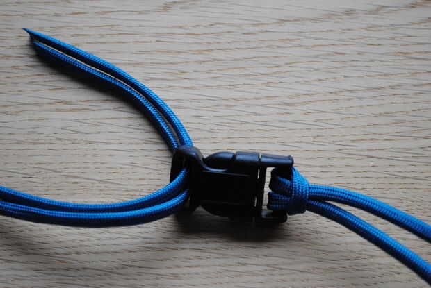 Luego tomar los dos extremos de la cuerda y pasar por el otro lado de la hebilla, otra vez usted puede enrollarlas alrededor de dos veces si lo desea, esto puede ayudar a evitar que el cable se mueva una vez que tengas configurado en la longitud correcta.