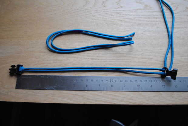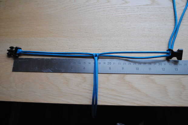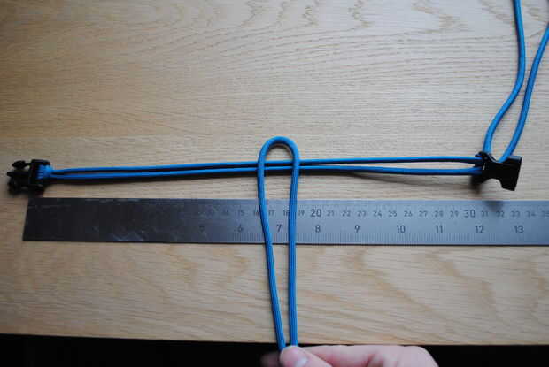 Entonces usted necesita encontrar el centro de la longitud del cable ya que este es el primer lazo que se pasa a través de la hebilla.