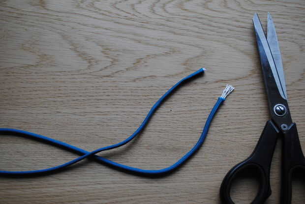 Cortar los extremos si ellos se hubieran fundido cerrada y tire a través de los filamentos internos por lo que todos ha dejado es la vaina externa.