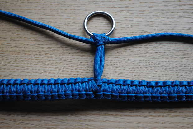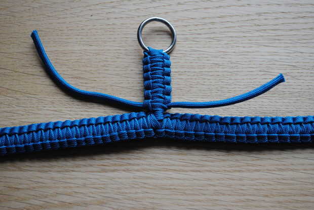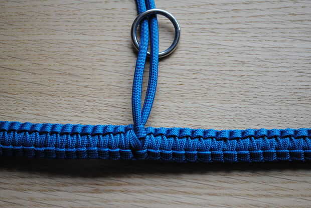Luego repita los pasos para la puntada de cobra a lo largo de la corta duración hasta alcanzar el anillo principal. Rematar los extremos cortando y de fusión en el lugar o simplemente tirando de ellos a través del centro del collar.