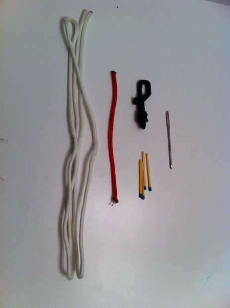 esta pulsera utiliza la armadura de paracord tradicional sólo diferentesPaso 1: materiales Más ligero4' de cada colorUna hebillaTijerasPaso 2: Preparando el Paracord Corte y quema al final de un color a un punto finoAproximadamente una pulgada de otr