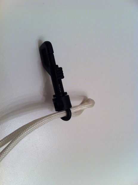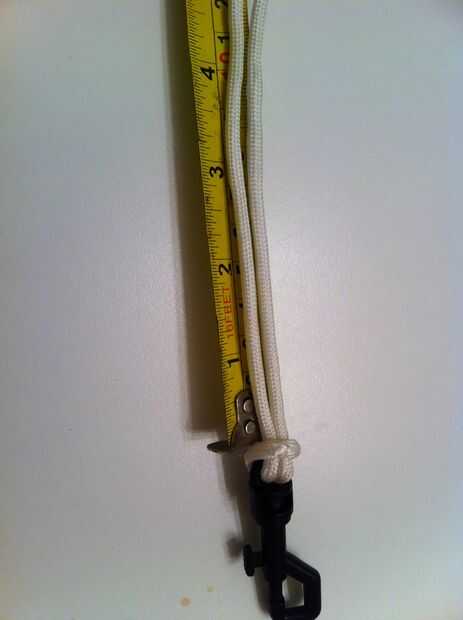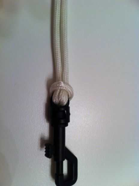 Toma el precio de 3'10 "de paracord y dóblalo por la mitad. Deslice el lazo lanzó el clip giratorio y lazo los extremos lanzaron el lazo y tire. De la medida de clip 3" y hacer la puntada de puño que es la puntada de cobra. La trenza hasta el clip