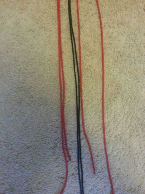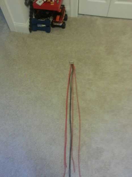 Crear un enganche de vacas, exactamente como el otro rojo cable excepto el cable más corto se enfrenta a la otra forma
