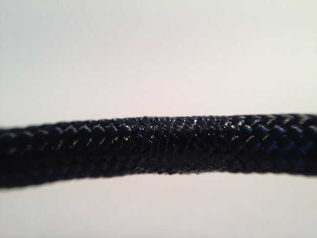 La vaina externa se verá como se muestra en la foto y se sienta duro-a.  El punto de corte debe ser ligeramente más brillante que el resto de la cuerda.