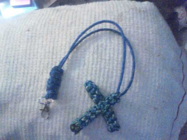 Solía 4 longitudes de 2 pies de paracord para la Cruz y otro 2 pies Coloque en el gancho de seguridad (opcional).