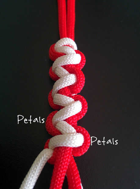 me inspiré para hacer esto de la 'flor del desierto de Paracord'. Lo que hizo wcstart con la cobra de la armadura, pero deja a un lado como un bucle vs tirando firmemente - esto forma 'Pétalos'. Cuando suficientemente largo doblado alrededor y sutura