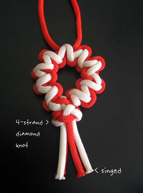 Una amapola de paracord comenzó de una modificación de un nudo plano básico. Usted necesitará un poco de experiencia con nudos general para esto - trabajando con paracord, nudos de 'preparación' y atando el tapón básico cuadrado sinnet y un tapón de