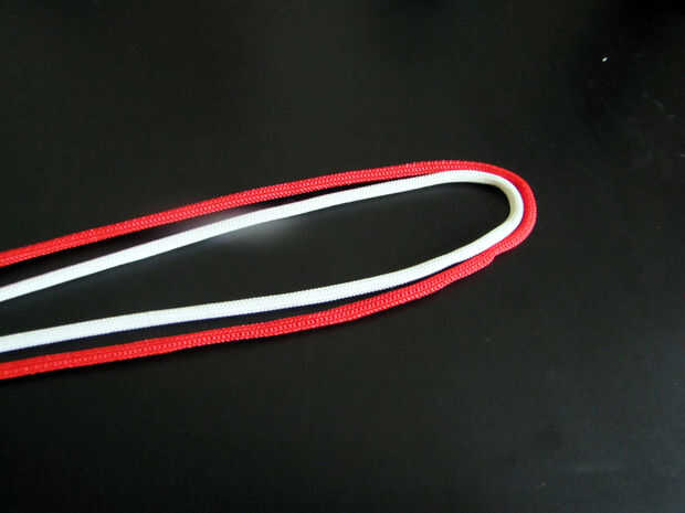 Desde el centro de las cuerdas, organizar los cables como se muestra en la imagen superior, más corto el cable interior (blanco en este caso).