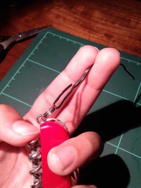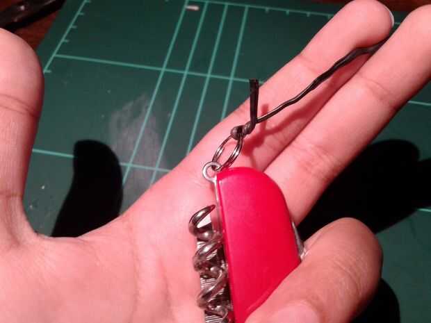 1. Poner el cable dentro de la cadena clave de acero de unos 2cm.