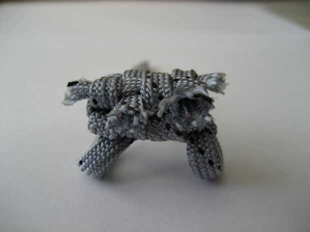 Corte todos los conductores, excepto la antena de plomo, a unos 1/8" de la mochila. Recortar el cable interior. Utilizar un encendedor para derretir y aplanar los cables a la mochila. Corte el cable de la antena de arriba es justo por encima de la cabeza del ejército, hombre. Luego cortar el cable en la espalda por aproximadamente 1/8" de pulgada. Derretir y sellar la parte superior de la antena con el encendedor.