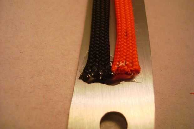 Pase una pulgada o tan digno del cordón por el agujero partido. Esto es donde tenemos que pensar esto. Lado pones los hilos, crea una protuberancia en ese lado, así que siempre los pongo en el lado del asidero interior de la manija. La parte interior de la empuñadura es la parte donde los dedos enrollado alrededor, no la palma. Es más cómodo aguantar con la protuberancia en el lado del asidero interior, así que lo pongo siempre allí.