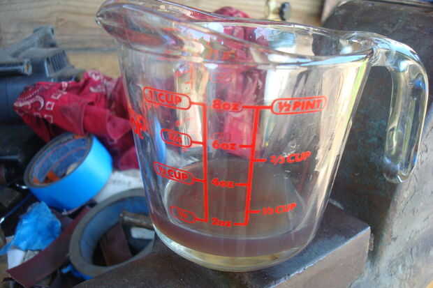 Mezclar una pequeña cantidad de resina de fibra de vidrio, utilicé 1 oz, pero 1/2 oz fácilmente hubiera bastado, simplemente no podía medir que pequeño en mi taza de la mezcla.