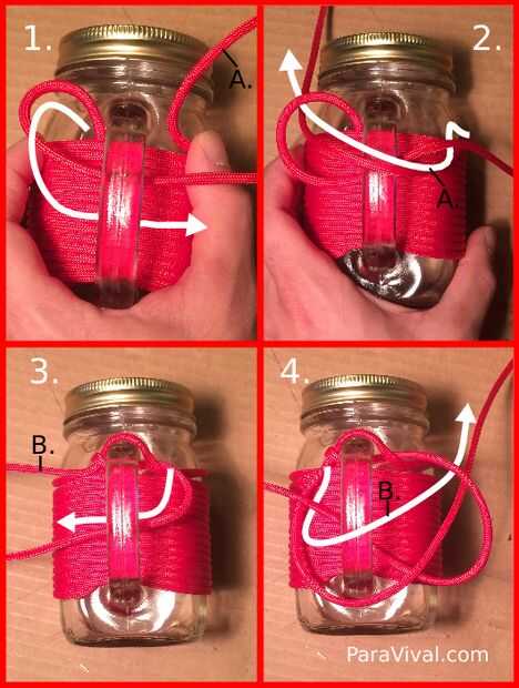 4. Tome la cuerda izquierda y rosca en el cable que solo han traído la derecha, luego la manija y a través del lazo creado en parte 3 del diagrama.