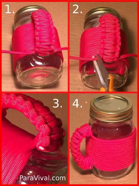 Nota: usted puede tire para arriba las trenzas apretarlos como vas. Esto permitirá más paracord caber en su taza.