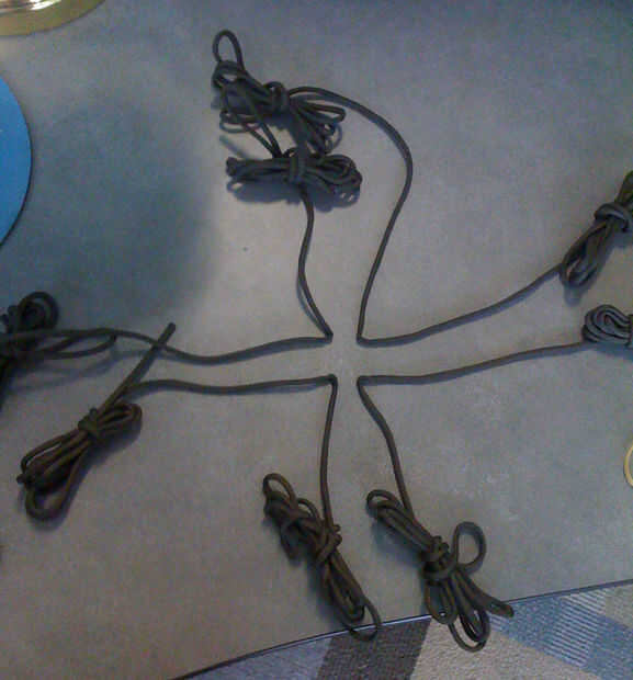me inspiré por todas las ibles en la fabricación de una "cuerda rápida" para su paracord.  Después de varios intentos mina mantiene que coloca alrededor de uno de los otros lazos y traer mi paracord a un alto.  Entonces recordé la manera de guar