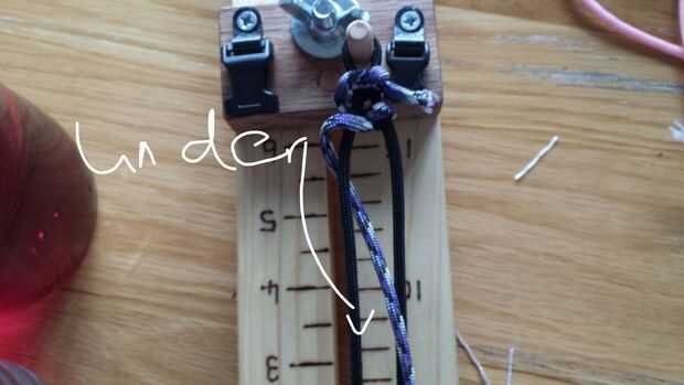 descargo de responsabilidad: la banda se hizo siguiendo las instrucciones en este enlace: http://www.m4040.com/Survival/Projects/Rescue%20Belt/RescueBelt.htmEsta plataforma:objeto 5ft - 2 x 4 u otro con longitud suficiente para que la banda está mont