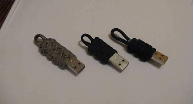 Utilizo un montón de discos, si sólo para probar Linux live CDs gracias a Unetbootin o mover los datos de mis alumnos de un ordenador a los otros y con el tiempo, el pegamento que mantiene el caso juntos tiende a renunciar a mí. Así surgió con lo que pensé que sería una solución rápida hasta que llego a hacer un conjunto de piezas de ajedrez USB para mi padre... Y para los últimos 2 años, estos bebés adornados de paracord nunca han mostrado un signo de desgaste, por lo que mantuvo de esa manera.