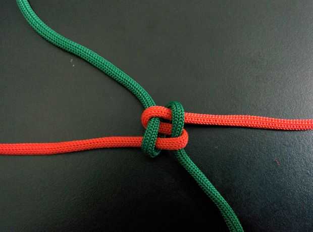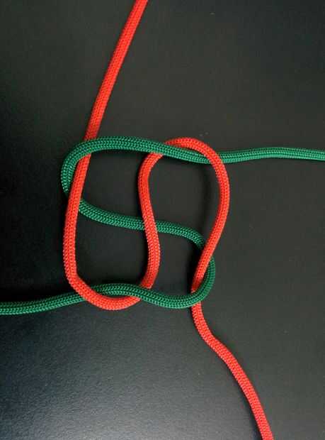 2. Tejer el cordón inferior (rojo) en el arco superior izquierdo (verde).
