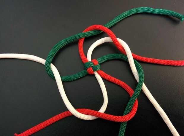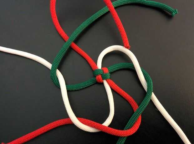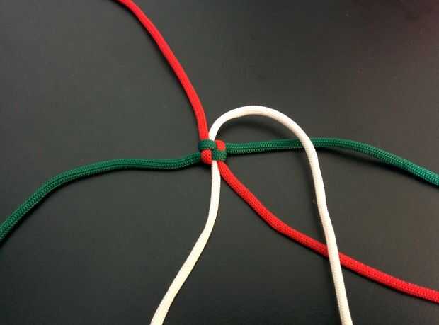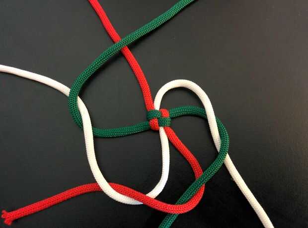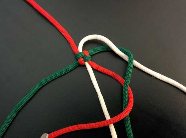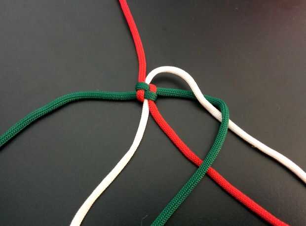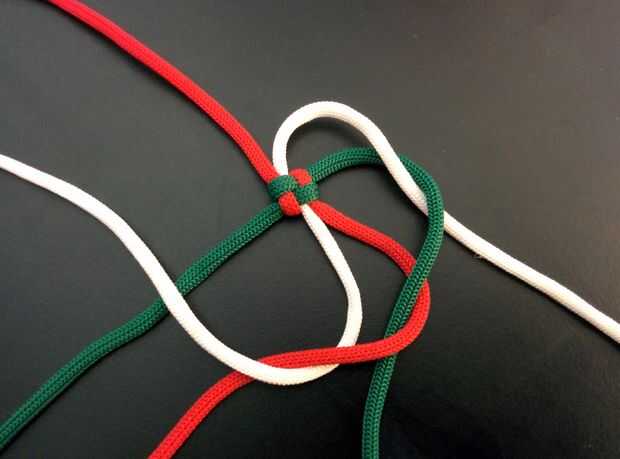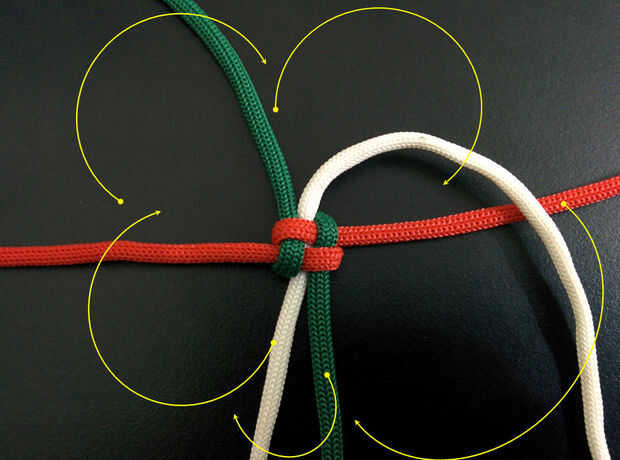 - Cuerda superior derecha (blanco) y cruzar el siguiente cable (rojo) moviéndose hacia la derecha (ver imagen).